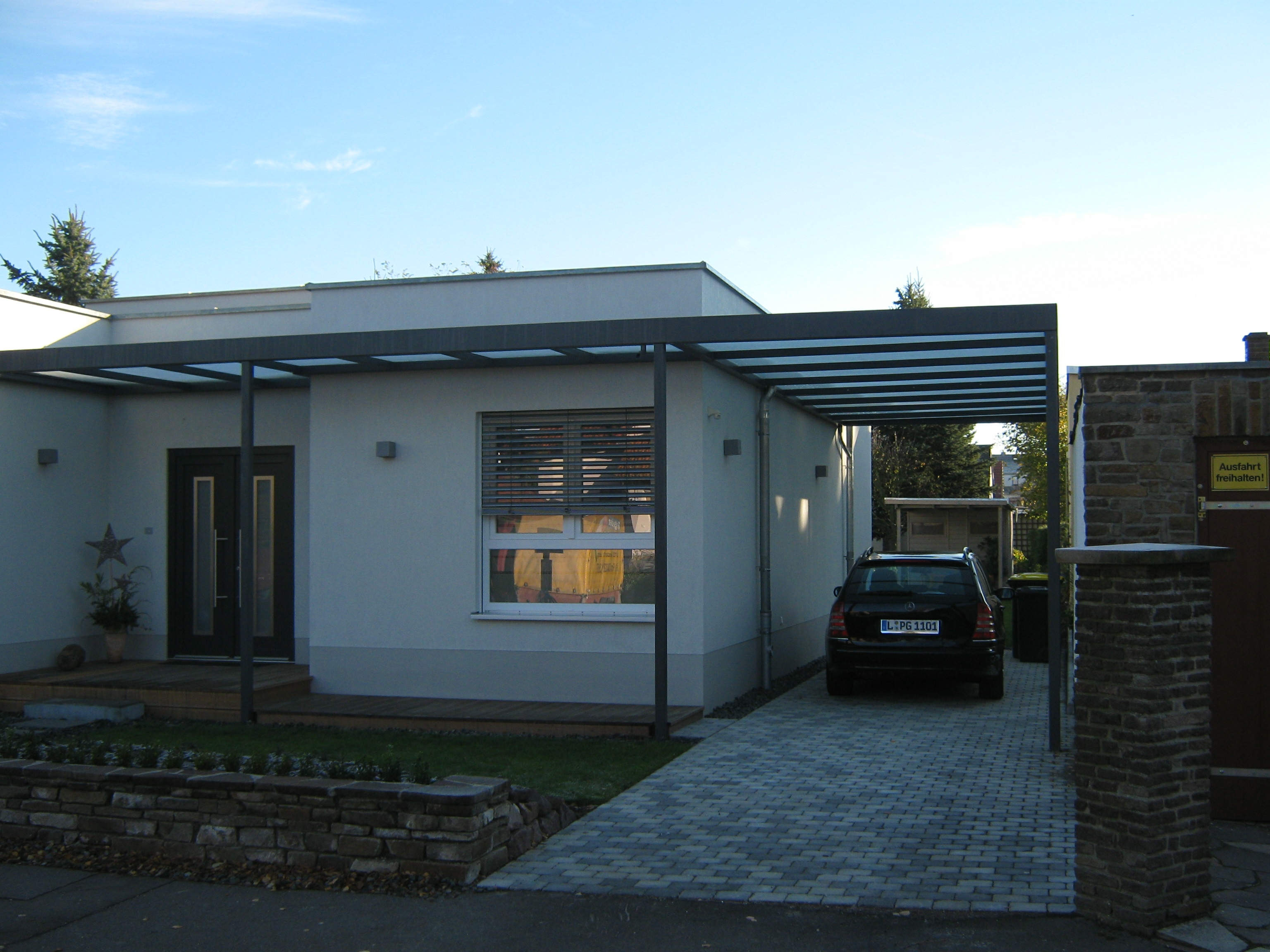Carport für private Nutzung | Eingangstreppe mit Vordach | Fenstergitter für private Bauherren