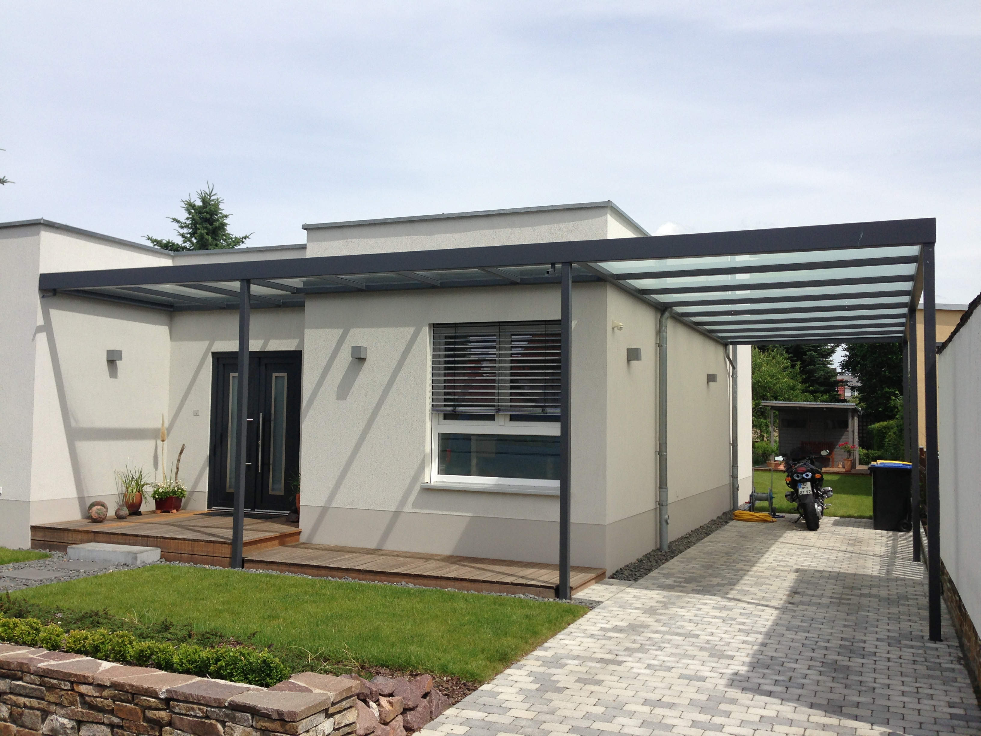 Carport für private Nutzung | Eingangstreppe mit Vordach | Fenstergitter für private Bauherren