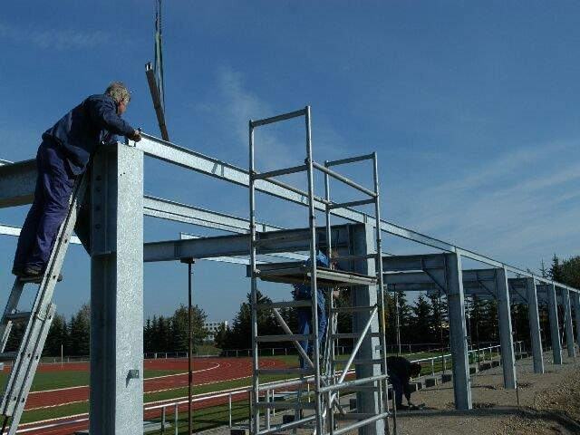 Fertigung und Montage der Tribünenüberdachung im **Waldstadion Zeulenroda**.